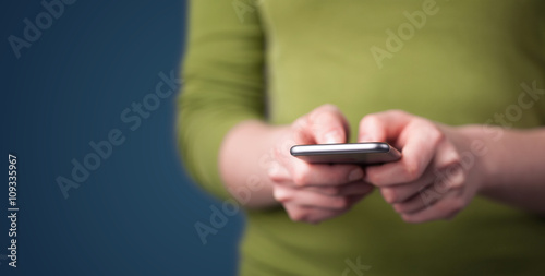 Young woman holding smarthphone in hand