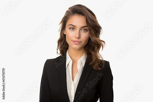 Young woman in a business casual outfit in front of a white wall Generative Ai