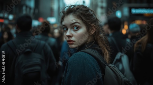 people, background, city, travel, young, atmospheric, light, girl, contrast, depth, detail, moody, field, lifestyle, photo, fashion, looking, dark, casual attire, crowd, candid, emotion, woman, image, authentic, thoughtful, intriguing, over, shoulder, bokeh, female, scene, urban, adventure, journey, mysterious, expressive, real, portrait, person, backpack, exploring, observant, pensive, shadow, metropolitan, curious, texture, of