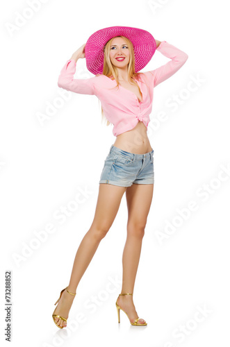 clothing, glamour, attractive, background, beautiful, clothes, dress, elegant, fashion, fashionable, female, figure, girl, isolated, lady, model, pretty, smile, style, vogue, white, woman, lifestyle, posing, glamour, jacket, coat, suit, costume, skirt, sewing, trousers, pant, shirt, happy, excited, thrilled, cheerful, glad, joyful, merry, hat, panama, beach, summer, pink, short