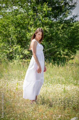 Young woman in white dress