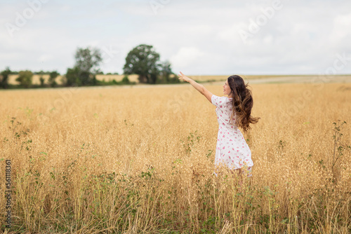 woman, field, countryside, young, walking, dress, wind, summer, people, adult, outside, chickpea, hair, cloud, cheerful, positive, romantic, portrait, rural, blowing, attractive, grass, freedom, girl, pretty, standing, female, landscape, nature, relaxing, beautiful, happy, motion, free, lifestyle, beauty, meadow, background, brunette, caucasian, yellow, country, fun, happiness, white, natural, smile, leisure, yellow grass