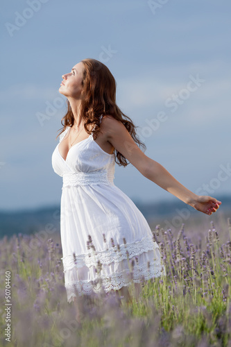 white, woman, waist up, 20s, adult, activity, arms raised, behaviour, blossoming, brunette, caucasian, concept, dreaming, dress, evening, female, field, flower, freshness, girl, harmony, horizon, imagination, lady, lavandula, lavandula, leisure, lifestyle, long hair, eyes closed, meadow, nature, 1, outdoors, people, person, purple, relaxation, rural scene, standing, sundress, tranquil scene, vertical, young, profile