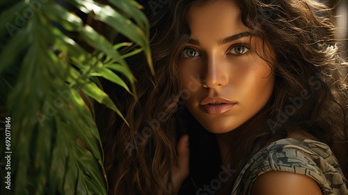 woman, beauty, fashion, model, green, environmental, vision, style, salon, person, skin, moisture, lady, palm, nature, eco, brow, young, dermatology, growth, plant, treatment, photogenic, eye, organic, summer, vacation, colours, travel, well-being, hair, leaf, fresh, exotic, make-up, skincare, wellness, tropical, trendy, cosmetology, girl, black, adult, caucasian, natural, cosmetic, resort, spa, lifestyle