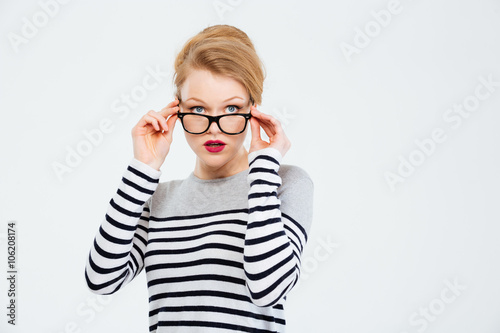 white, young, background, portrait, face, adult, girl, student, casual attire, caucasian, people, female, youth, woman, confident, blond, pretty, isolated, natural, attractive, expression, 20s, studio, cute, looking, up, pensive, thoughtful, thinking, person, beauty, lovely, serious, beautiful, fresh, fashion, copy space, lip, trendy, alone, 1, standing, charming, holding