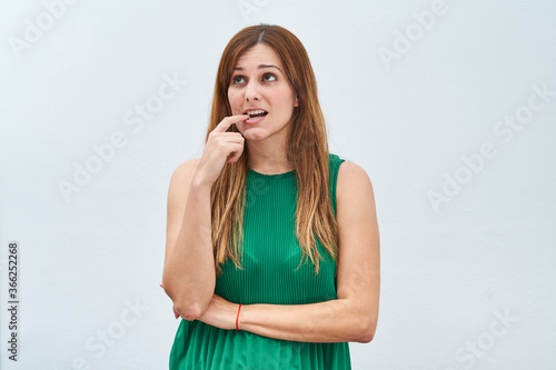 person, woman, young, white, thinking, portrait, beautiful, background, girl, isolated, female, adult, happy, looking, attractive, thoughtful, idea, smile, face, beauty, pretty, caucasian, hair, model, pensive, brunette, studio, thought, cute, expression, business, 1, casual attire, fashion, lady, thinks, smiling, cheerful, up, latin, student, confident, elegant, standing, hand, lifestyle, hispanic, success, dream, cool
