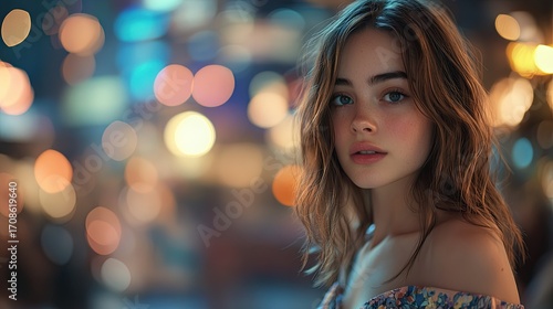 woman, girl, portrait, night, city, bokeh, light, beauty, people, teenage, street, urban, fashion, attractive, model, closeup, portraiture, casual attire, beautiful, pretty, smile, calm, thoughtful, serious, sharpened, expression, face, eye, hair, shoulder, dress, bohemian, nightlife, lighting, photogenic, attraction, elegant, stylish, casual clothes