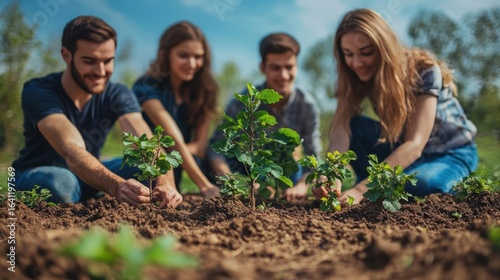 young woman planting flowers