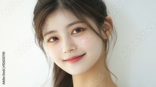 woman, girl, portrait, face, young, beauty, skin, smile, eye, hair, brown, light, gentle, soft, make-up, eyelash, eyebrow, nose, lip, cheek, chin, neck, shoulder, asian, model, attractive, pretty, cute, innocent, delicate, flawless, expression, serene, calm, peaceful, elegance, graceful, youthful, natural, healthy, glowing, radiant