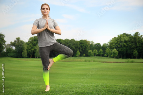 Young woman practicing yoga in park