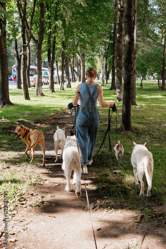 dog, pet, person, animal, walking, walker, outdoors, leash, woman, lifestyle, service, nature, group, companion, cute, friendship, care, young, one person, professional, happy, sidewalk, pack, love, female, occupation, photo, mammal, puppy, rescue, togetherness, urban, friends, domestic, holding, job, terrier, business, owner, relaxation, sunlight, breed, healthy lifestyle, domestic animals, real people, russell, outside, many