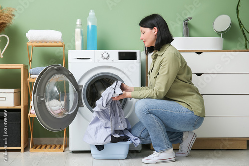 clothes, dirty, laundry, machine, putting, room, washing, woman, young, adult, apparatus, appliance, background, care, caucasian, chore, clean, cleaning, cleanup, colours, device, domestic, drying, electrical, equipment, female, girl, green, household, housekeeping, housework, hygiene, indoor, people, person, portrait, pretty, routine, sanitary, tidiness, tidy, laundered, white
