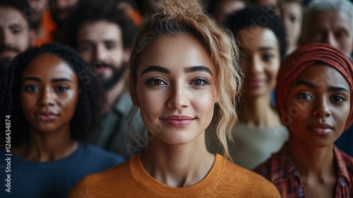 woman, young, smiling, diverse, crowd, people, group, face, multicultural, oneness, togetherness, community, inclusion, portrait, background, blurred, sharpened, expression, happy, friendly, confident, beautiful, face, eye, hair, skin, tone, colours, style, fashion, clothing, apparel, orange, shirt, woman, man, culture, society, global, international, ethnicity, race, generation