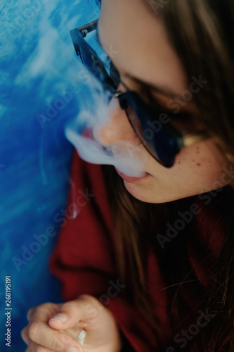 daylight, cigarette, caucasian, casual attire, cannabis, burn, bad habit, brunette, young, ash, woman, alternative, wild plant, alone, unhealthy, adult, trendy, addiction, treatment, tobacco, sunglasses, reefer, smoking, smoker, smoke, rolling, relaxation, medicative, ganja, legalize, legal, joint, head shot, green, grass, ganja, emanating, drug, dope, white, girl, female, person, people, adult, 20s, grown-up
