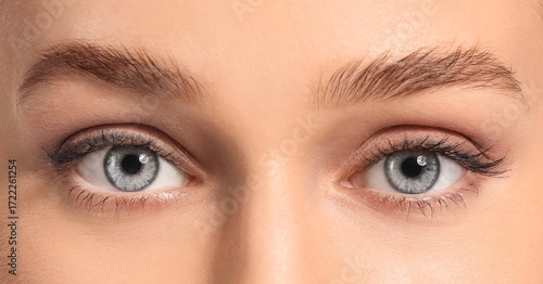 Young woman with beautiful eyebrows, closeup