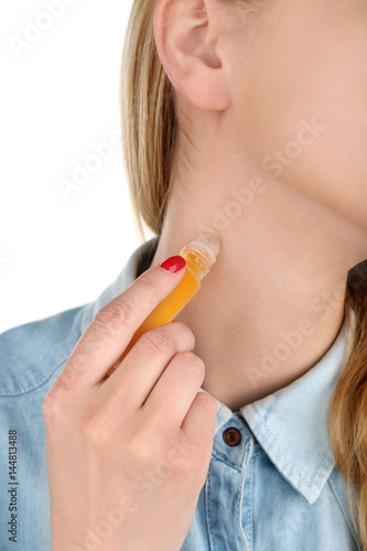 apply, aroma, aromatic, background, beauty, body, bottle, care, chic, closeup, container, cosmetic, dermatology, essence, essential, face, fashion, female, fluid, fragrance, glamour, hand, hygiene, liquid, luxury, neck, odour, perfume, perfume bottle, perfumery, person, product, scent, sensual, smell, style, test, tester, trend, white, woman, young