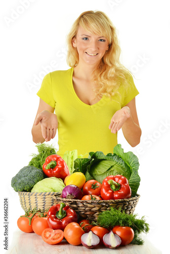 woman, female, girl, adult, isolated, white, grocery, shopping, vegetable, food, tomatoes, plant, pepper, cabbage, onion, broccoli, basket, wicker, hand, smile, beautiful, cute, charming, vegetarian, kitchen, consumer
