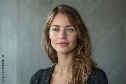 woman, smiling, portrait, interior, modern, concrete, wall, long, hair, young, beauty, casual attire, friendly, natural, light, lifestyle, relaxed, cheerful, expression, wear, contemporary, serenity, happiness, high-coloured, colours, personal, elegance, aesthetic, warmth, youthful, simplicity, environment, neutral, tone, indoor, charme, fashion, calmness, eye, contact, confidence, positive, vibe, urban, style, grace, health, wholesome, emotional