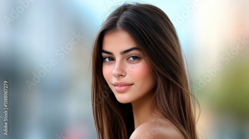 young, woman, long hair, smiling, natural, beauty, portrait, lifestyle, model, happiness, confidence, enjoyment, sunlight, charming, radiance, calmness, serenity, attractiveness, youthfulness, casual attire, skin, joy, feminine, closeup, day, fresh, bright, relaxed, cheerful, eye contact, nature, scene, hair care, feature, glowing, warmth, style, elegance, graceful, fashion, personality, individual, cute, stunning, alluring