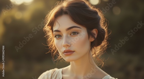 portrait, woman, young, outdoors, beauty, natural light, soft focus, aethereal, serene, brown hair, smiling, romantic, sunny, bokeh, photo, closeup, fashion, feminine, elegant, colourful, nature, glow, youthful, model, artistic, dreamy, calm, charming, gentle, beautiful, warm tones, radiant, emotion, expression, appealing, poetic, fresh