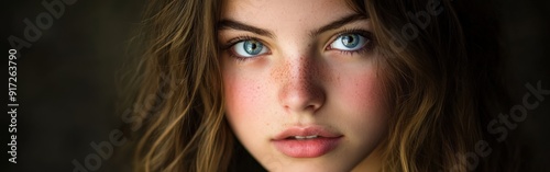 young, woman, blue, eye, natural, make-up, soft, lighting, portrait, beauty, closeup, expression, candid, calm, serene, hair, medium, length, brown, freckle, youth, innocence, gaze, stunning, charme, facial, feature, warm, tone, depth, confidence, emotional, minimalist, skin, tone, standard, calmness, light, shadow, intimate, styling, authenticity, youthfulness, photogenic, atmosphere, relaxed, inviting, aesthetic, allure