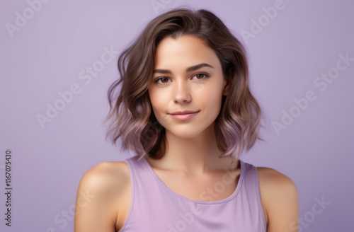 woman, girl, portrait, face, hair, curly, model, beauty, fashion, style, purple, lavandula, colours, wave, blond, brunette, shoulder, smile, happy, confident, young, adult, pretty, attractive, gorgeous, healthy, skin, make-up, natural, casual attire, clothing, tank, top, studio, background, photo, photo, image, person, expression, people, eye, 1, smiling, looking, closeup, lady, head, joy