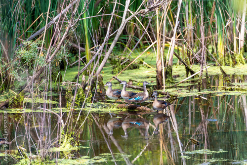 nature, duck, young, bird, river, water, reed, group, summer, wildlife, water bird, outdoors, environment, wisconsin