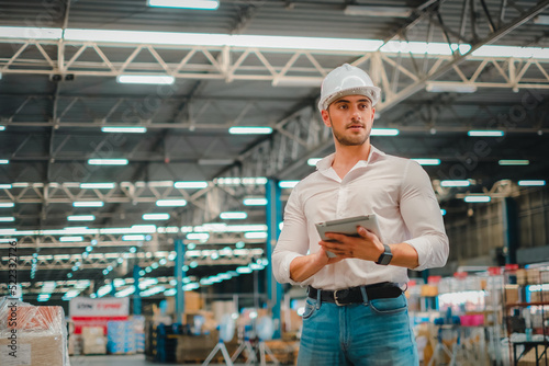 Young worker working in an industrial place of work. logistics service, warehouse management and inventory concept.