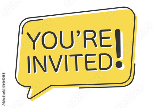 You're invited comic speech bubble in pop art style. Comic speech. Dialog window. Yellow banner for sale.