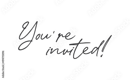 You're invited. Handwritten style typography message for invitation card. Lettering text.