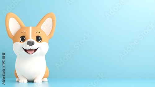 Youthful dog with a charming smile and captivating eyes, Youthful Corgi with Charming Smile on Blue Background