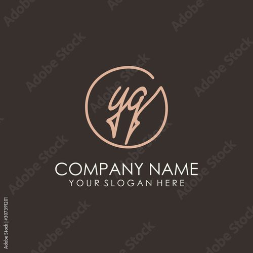 YQ initials signature logo. Handwritten vector logo template connected to a circle. Hand drawn Calligraphy lettering Vector illustration.