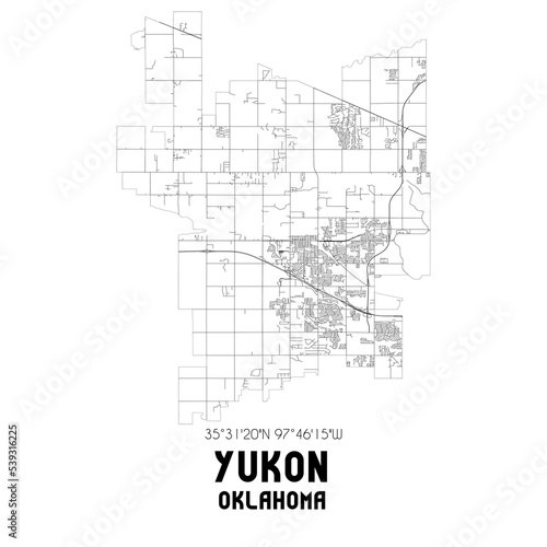 Yukon Oklahoma. US street map with black and white lines.
