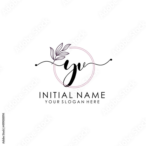 YV Luxury initial handwriting logo with flower template, logo for beauty, fashion, wedding, photography