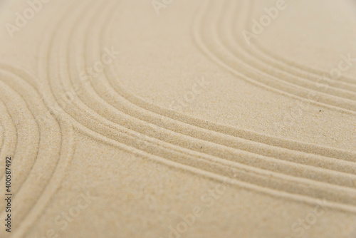 Zen sand garden meditation stone background with copy space. Stones and lines drawing in sand for relaxation. Concept of harmony, balance and meditation, spa, massage, relax. Set Sail Champagne color