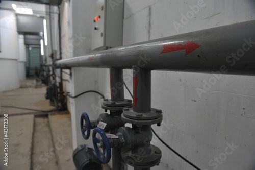 Zhambyl region, Kazakhstan - 05.15.2013 : Technical equipment of a hydroelectric power station connected by pipes and sensors