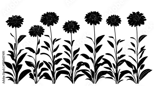 Zinnia patch in a cutting garden with paths, Plant Vector Graphic