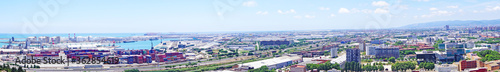 port, gantry, quay, dock, crane, good, container, container, water, barcelona, charge, discharge, mooring, industrial zone, sea, horizon, freighter, workplace, panoramic, boat, abstract, mosaic