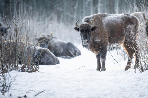 winter, animal, nature, wildlife, snow, forest, white, horn, wild, bison
