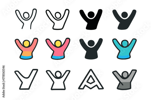 logotype, variation, set, move, raised, arm, motion, vector, style, emblematic, line, bold, thick, solid, black