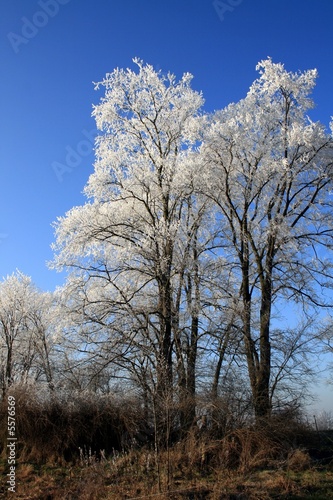 Zwei Bäume mit Raureif