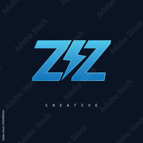 ZZ Thunderbolt Monogram – Futuristic Electric Logo with Bold Blue Energy Strike