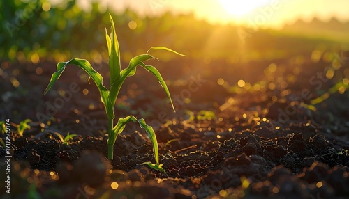 corn, germinating, germ bud, plant, sunlight, agriculture, farming, field, crop, growth, nature, life, dawn, sunrise, horizon, bokeh, texture, dirtied, dirt, sharpened, green, leaf, stage, early, season, summer, rural, outdoors, earth, vibrantSHARE