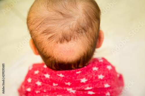 family, rubbing, loss, infant, bed, bald spot, baldness, caucasian, children, skin, head, hair, bald, baby, children, small, back, cute, white, dark, lying, childhood, people, month, closeup, person, spot, care, studio, boy, ear, cut-out, macro, newborn, little, health