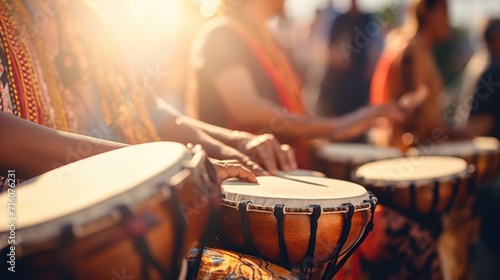 Canvas Prints: Closeup of traditional instruments being played at a music festival.