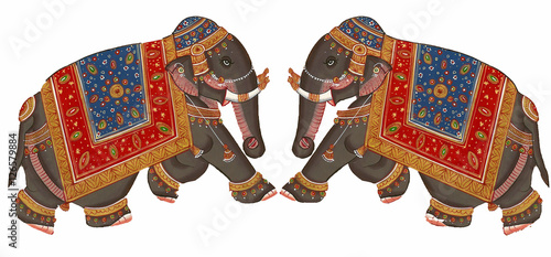 caparison, decoration, miniature, painting, elephant, colours, painted, drawing, illustration, animal, india, asian