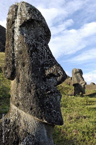 Duvet Covers: Moai in the Rano Raraku volcanic crater formed of consolidated ash (tuf), Easter Island, Chile