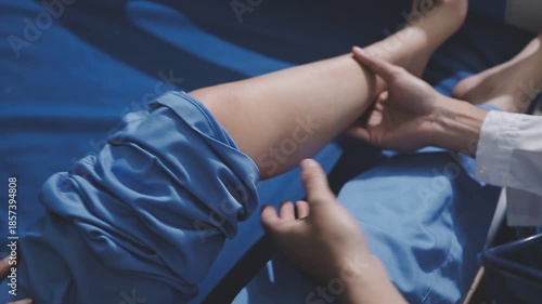 patient, doctor, hospital, knee, muscle, pain, recovery, medicine, care, leg, foot, orthopedics, exercising, physical therapy, examining, spa, stretching, support, trust, working, bone, advice, asking, assistant, expertise, massaging, nurse, occupation, performance, posture, pride, pulling, responsibility, retirement, science, shoulder, strength, togetherness, two people, uniform, ankle, chiropractor, confidence, empathy, glove, ligament, neck, office, relaxationSHARE