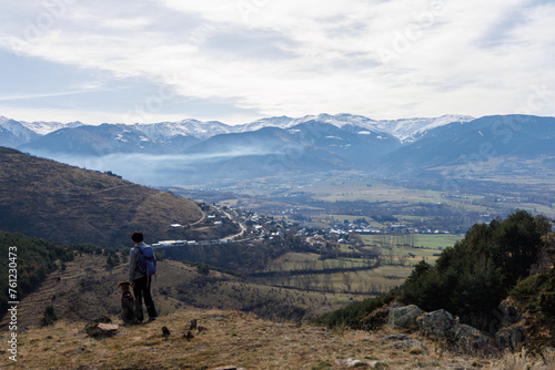 scenic, mountain, panorama, ballad, walk, catalan, contemplation, enclave, snow, hiker, village, aerial view, spain, hike