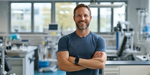 physiologist, exercise, sport, laboratory, standing, portrait, fitness, smiling, health, wellness, physiology, training, science, expertise
